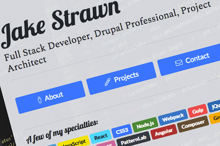 My specialties focus on front end development by choice. I have been using PHP for nearly 20 years, and have extensive knowledge of backend development and project architecture, though I primarily develop for Drupal these days. The projects I work on are typically large and complex, usually requiring advanced multi-site/multi-environment setups. I have worked on Drupal projects requiring as many as 11 separate visual representations (at launch) for the same backend code.